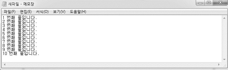 이 프로그램을 실행한 C:/doit 디렉터리를 살펴보면 새파일.txt 파일이 생성되었음을 확인할수 있다. 새파일.txt 파일에는 어떤 내용이 담겨 있는지 확인해 보자.