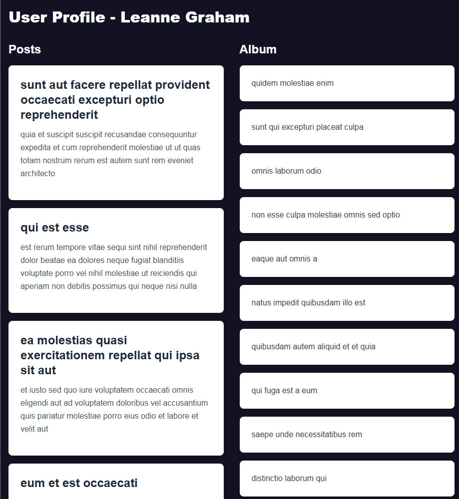 - user/posts/albums가 모두 준비되면 한 번에 렌더링합니다.