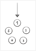 다음과 같이 시계방향으로 1~5가 적힌 다이얼이 있으며 현재 가리키는 눈금은 1이다.
