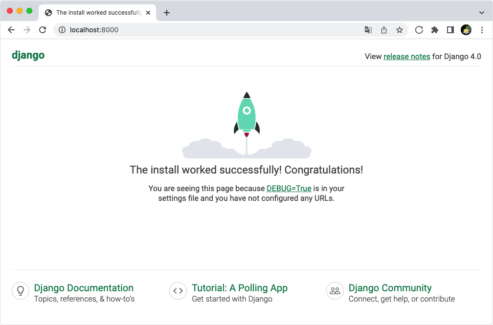 이렇게 개발을 위해 실행되는 장고 서버는 로컬호스트(localhost)로 실행되기 때문에 로컬 서버라고 부른다. 이 책에서는 앞으로 이렇게 실행되는 장고 서버를 로컬 서버 또는 개발 서버라고 하겠다.