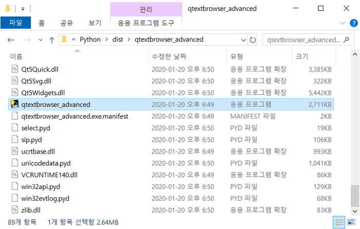 다시 dist 폴더로 이동하면 실행파일 하나만 생성된 것을 볼 수 있습니다.