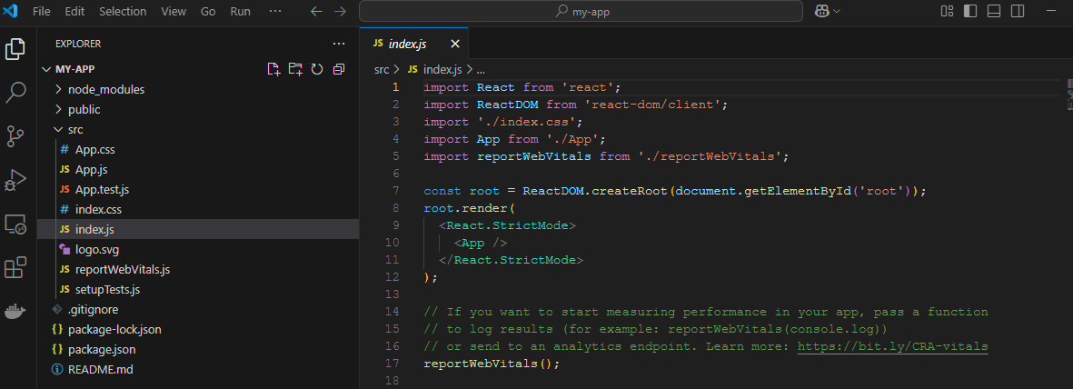 react 프로젝트가 실행이 되면 home\src\index.js 파일이 실행이 됨