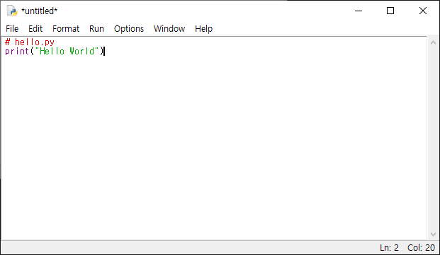 - IDLE 에디터 창(Editor Window) - IDLE 에디터가 실행되는 창이다.