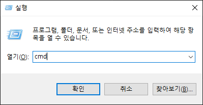 hello.py 프로그램을 실행하기 위해 먼저 명령 프롬프트 창을 열어 보자. [윈도우 키 + R]을 누르면 다음과 같은 실행 창이 나타난다.