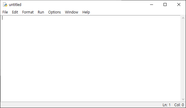 그러면 다음과 같이 빈 창이 나타나는데 이 창이 IDLE 에디터이다.