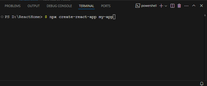 예) D:\ReactHome\my-app 경로로 프로젝트를 생성하려면